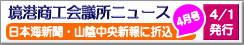 2026/03/27 ◆◇◆境港ニュース◆◇◆ 2026/03/17 2026年クルーズ客船寄港予定 2026/03/01 市報さかいみなと 【3月号】 2026/03/01 クルーズ客船寄港時の物販出店希望者の募集について 【境夢みなとターミナル】 2026/03/01 ポ〜タルプレゼント♪小倉水産食品『炙り鯖ジャーキー』を抽選で5名様に! 【3/31(火) 応募締切】 2026/03/01 さかいみなとポ〜タル特集 『蟹(かに)の陣』 合戦中 2026/03/01 ● 商工会議所トピックス ● 2026/03/05 境港漁獲情報 【2026年2月分】 2026/03/27 釣具すいどう 2026/03/27 NGI(エヌジーアイ)クリーンサービス 2026/03/27 イラストとマンガ「まめきち」 2026/03/27 味処 美佐 2026/03/27 カナリヤコーヒー 2026/03/27 山陰のお寿司ヒトトセ 2026/03/27 よりどりみどり・境港プラス 【境港市観光協会通販サイトのまとめ】 2026/03/27 味付もずく 【海産物のきむらや】 2026/03/27 境港観光協会オンラインストア 2026/03/27 妖怪本舗 【妖怪舎】 2026/03/27 これがみなとの 『じゃころっけ』 【小倉屋】 2026/03/27 かにみそバーニャカウダ 【門永水産】 2026/03/27 角屋のあじフライ 【角屋食品】 2026/03/27 境港市内観光客入り込み実績 【2月分】 2026/03/27 国際定期便を利用したアウトバウンド利用促進支援制度のご案内 2026/03/27 水木しげるの大昭和史展 開催中【水木しげる記念館 2026/4/5 まで】 2026/03/27 米子−ソウル、台北便に乗ろう!【米子鬼太郎空港】 2026/03/27 境港おもちゃ病院 【4/4(土)、4/18(土)毎月第1・3土曜日】 2026/03/27 夢みなとタワー イベント 2026/03/27 境港観光協会 公式動画チャンネル 2026/03/26 トリパス2025 スタート 【2025/4/1〜2026/3/31】 2026/03/27 ポ〜タルプレゼント♪小倉水産食品『炙り鯖ジャーキー』を5名様にプレゼント!【3/31(火)締切】 2026/03/27 境港商工会議所ニュース2026年4月号 2026/03/27 「第56回新就職者激励会【4/6(月)】」「新入社員セミナー【4/7(火)】」開催のご案内 2026/03/27 @<生産性向上・新技術導入推進型>事業 認定要領 2026/03/27 @<新たな企業価値創造型>事業 認定要領 2026/03/27 【共通】鳥取県産業未来共創事業〈新たな企業価値創造型/生産性向上・新技術導入推進型〉のご案内 2026/03/27 労働保険料等「算定基礎賃金等の報告」【エクセル入力用】 2026/03/27 2026年度および2027年度簿記検定試験区分表について 2026/03/27 【共通】産業未来共創補助金<新たな企業価値創造型/生産性向上・新技術導入推進型> 補助事業実施の手引き 2026/03/27 A<生産性向上・新技術導入推進型>事業 認定申請書(様式集) 2026/03/27 A<新たな企業価値創造型>事業 認定申請書(様式集) 2026/03/27 労災保険率表 2026/03/27 労働保険料等「算定基礎賃金等の報告」【手書き用】 2026/03/27 2026年度 境港商工会議所検定スケジュール 2026/03/27 B<生産性向上・新技術導入推進型>補助金 交付要領 2026/03/27 B<新たな企業価値創造型>補助金 交付要領 2026/03/27 労働保険料算定基礎賃金「支払計算書」【エクセル入力用】 2026/03/27 令和8年度雇用保険料率のご案内 2026/03/27 C<生産性向上・新技術導入推進型>補助金 交付申請書(様式集) 2026/03/27 C<新たな企業価値創造型>補助金 交付申請書(様式集) 2026/03/27 労働保険料算定基礎賃金「支払計算書」【手書き用】 2026/03/27 境港商工会議所&鳥取県よろず支援拠点「経営相談会」【次回は4/14(火)】 2026/03/27 D<生産性向上・新技術導入推進型>補助金 進捗状況報告書【年度末報告用】 2026/03/27 経営力向上計画 【中小企業庁】 2026/03/27 D<新たな企業価値創造型>補助金 進捗状況報告書【年度末報告用】 2026/03/27 知財無料相談会 【次回は4/8(水)】 事前予約が必要 2026/03/27 先端設備等導入計画について【境港市】 2026/03/27 E<生産性向上・新技術導入推進型>実績報告書【補助事業終了時】 2026/03/27 E<新たな企業価値創造型>実績報告書【補助事業終了時】 2026/03/27 リテールマーケティング(販売士)検定試験の科目体系の変更等について 2026/03/27 事業承継・個別相談会【次回は4/16(木)】 2026/03/27 【ネット試験】 リテールマーケティング(販売士)検定 2026/03/27 商工会議所検定試験サンプル問題 2026/03/27 第2弾 境港市事業者エネルギー価格高騰対策支援金【申請期限:6/30(火)】 2026/03/27 持続的な賃上げ・生産性向上支援補助金【鳥取県 申請期限:6/30(火)】 2026/03/27 鳥取県米国関税対策支援補助金【鳥取県 募集期限:3/31(火)】 2026/03/27 【ネット試験】 日商簿記検定(2級・3級) 2026/03/27 【ネット試験】日商原価計算初級 2026/03/27 商工会議所検定試験・ネット試験の受験方法 2026/03/27 インド人学生インターンシップ 受入企業募集 2026/03/27 鳥取県未来人材育成基金 寄付金募集 2026/03/27 日商簿記検定(2級・3級)ネット試験に関するQ&A 2026/03/27 消防団協力事業所になりませんか?【鳥取県】 2026/03/27 【ネット試験】 電子会計実務検定 2026/03/27 鳥取県外国人材受入支援補助金 2026/03/27 鳥取県外国人活躍促進企業支援補助金 2026/03/27 「EAT(イート)鳥取」で多言語メニューを無料で簡単作成!【鳥取県】 2026/03/27 国内商談会等参加支援補助金のご案内【境港市】 2026/03/27 企業支援ガイドブック 【令和7年度版 鳥取県】 2026/03/27 商工会議所LOBO(早