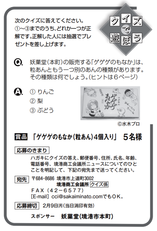 境港商工会議所ニュース掲載 「クイズで遊ぼう」 【締切 2/9(月)】